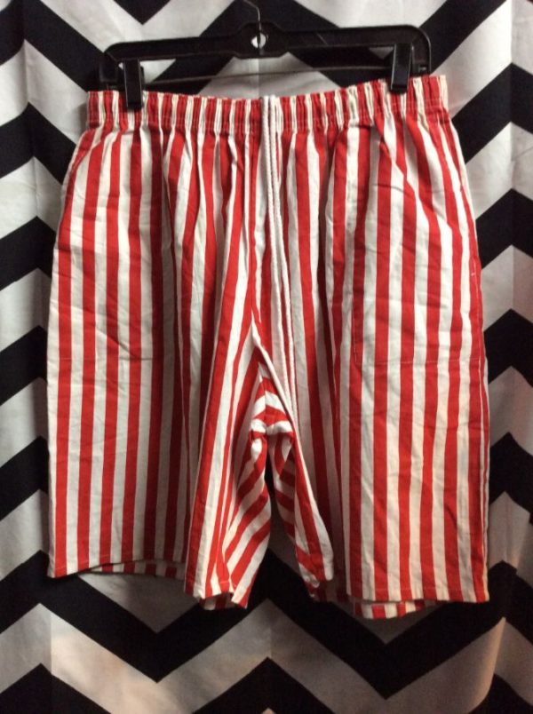Vintage swim trunks, elastic waist, vertical striped pattern, red/white as is