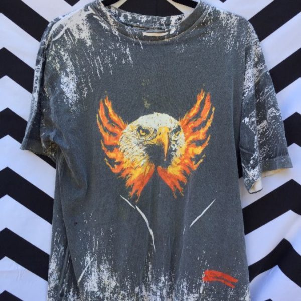 1990’S VINTAGE T-SHIRT, BLEACHED W/TIE DYED LOOK, FLAMING EAGLE GRAPHIC