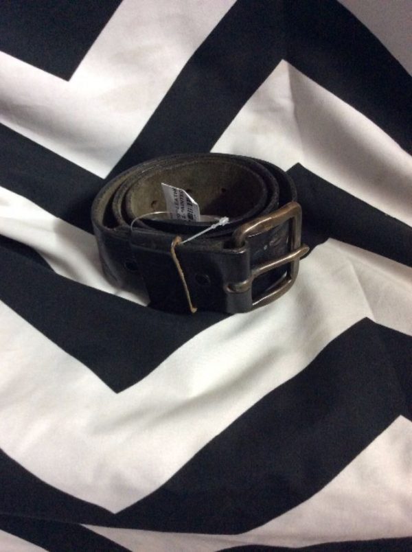 VINTAGE JUSTIN BELT EMBOSSED & PAINTED LEATHER WIDE W/HEAVY BRONZE BUCKLE