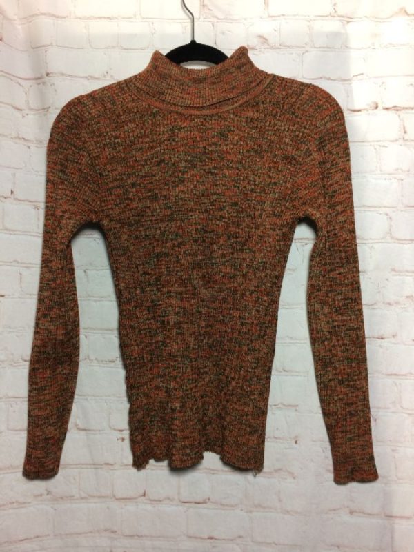 Vintage Albee sweater, pullover, ribbed knit, turtleneck with zip-up neck in back, rust/light gray/dark gray, size S