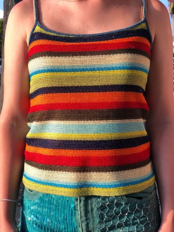 VINTAGE 1990’S TANK TOP – SPAGHETTI STRAPS – HORIZONTAL STRIPE DESIGN