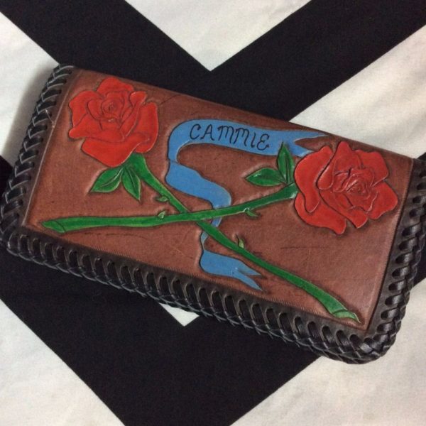 WALLET MEXICAN LEATHER CAMMI TWO ROSES BINDED EDGES