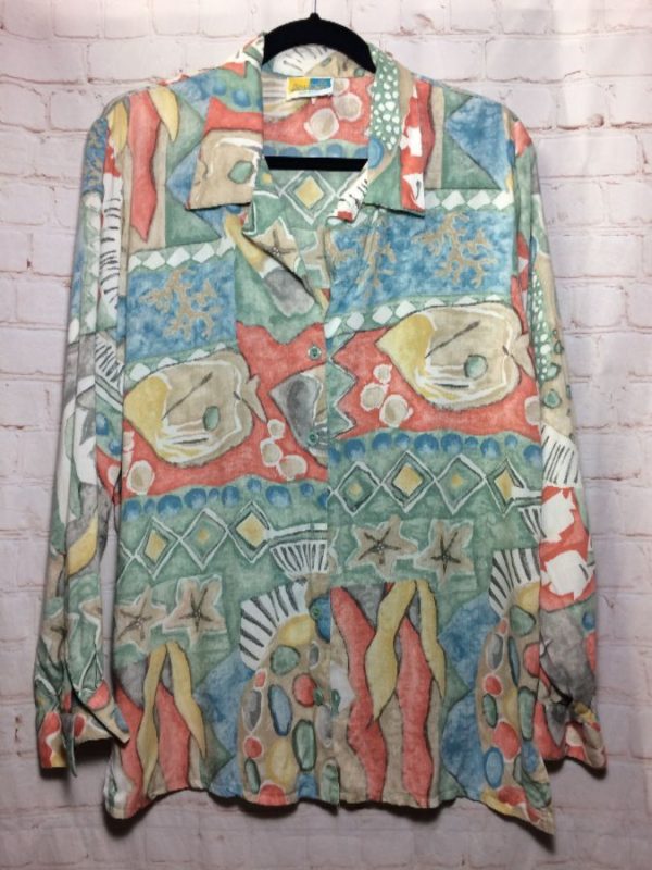 WATERCOLOR PRINT w/ FISH DESIGN & COLLAR SHIRT