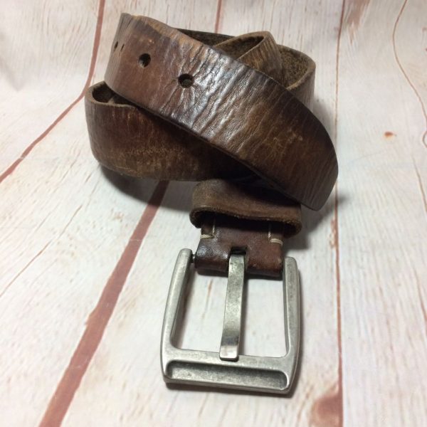 WEATHERED LEATHER BELT W/ SILVER METAL BUCKLE