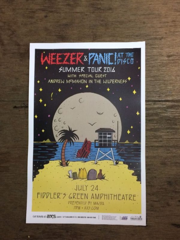 WEEZER AND PANIC AT THE DISCO SUMMER TOUR AT FIDDLERS GREEN AMPHITHEATRE CONCERT POSTER