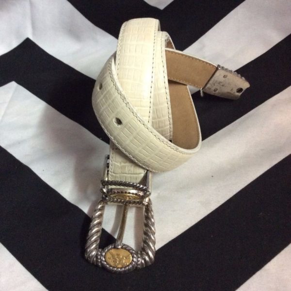 1990S BRIGHTON CROC EMBOSSED LEATHER BELT ORNATE CHERUB BUCKLE LOOP & TIP