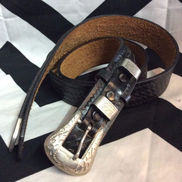 lizard embossed LEATHER BELT SILVER MEDALLION CONCHOS