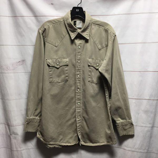 CLASSIC KHAKI WESTERN LONG SLEEVE BUTTON UP SHIRT PEARL SNAP BUTTONS – AS IS