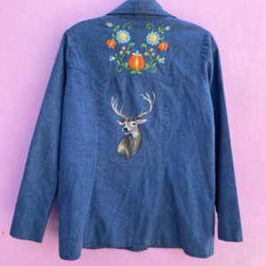 1970S EMBROIDERED LONG SLEEVE HAND PAINTED DEER DENIM SHIRT AS-IS
