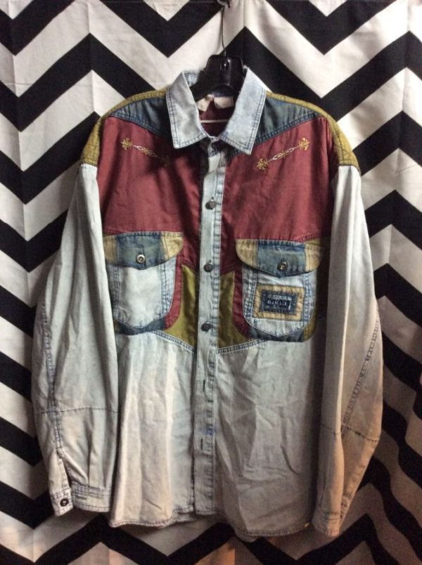 WESTERN STYLE DENIM SHIRT ACID-WASH W/ MULTI-COLOR PANELS