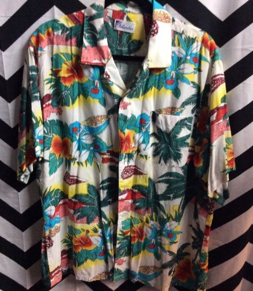 HAWAIIAN SHIRT – FLORAL BEACH SCENE DESIGN