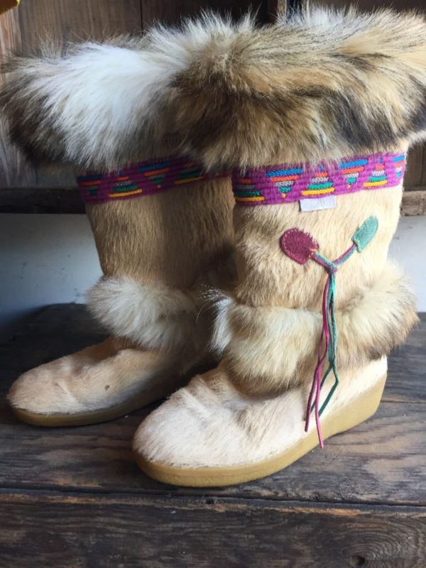 TECHNICA WILD GOAT FUR BURNINGMAN STYLE BOOTS W/ WOVEN TRIM