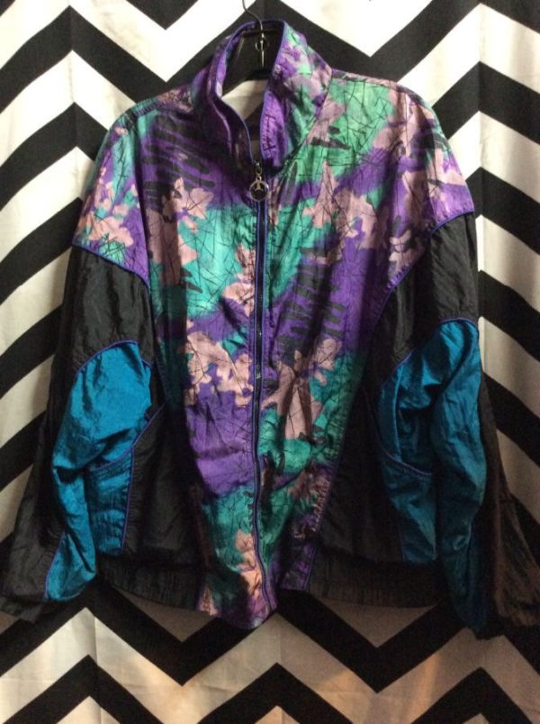 WINDBREAKER 1990’S CRAZY PRINT W/ PEACE SIGN ZIPPER PULL