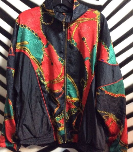 Windbreaker, zip-up, multi-colored belt design, black/multi, size L