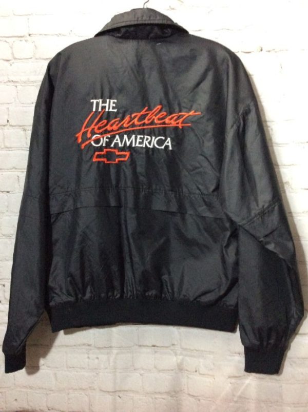 Chevrolet windbreaker jacket, nylon, snap-button, The Heartbeat Of American, embroidered logos on left front chest & full back, black/red/white, size M