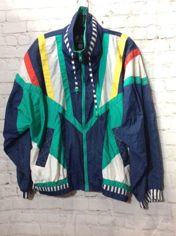 FUN! 1980S COLORBLOCK NYLON MOCK COLLAR ZIP-UP JACKET