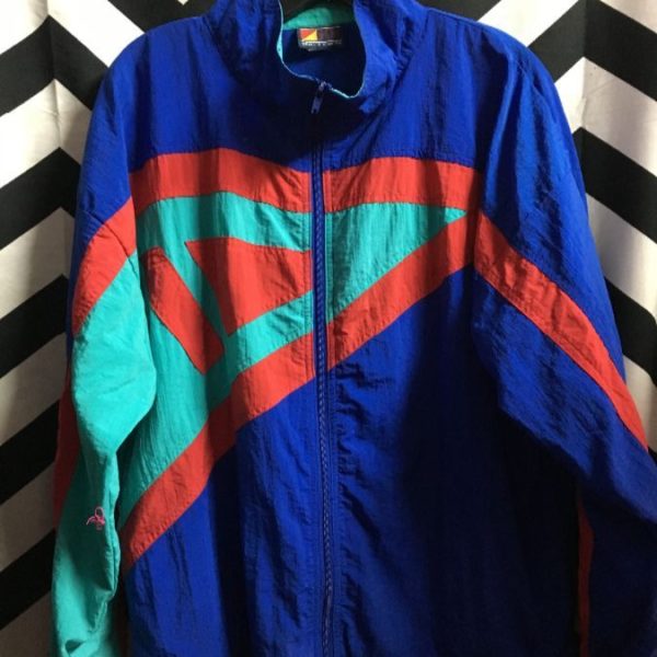FUN! 1980S COLORBLOCK NYLON MOCK COLLAR ZIP-UP JACKET