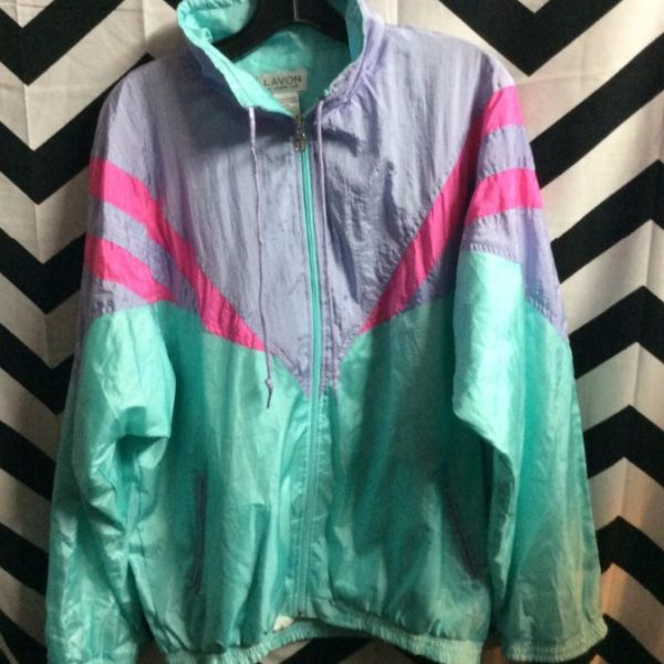 Windbreaker jacket, zip-up, color block design, pastels & neon colors, neon turq/neon pink/ lavender, size XL