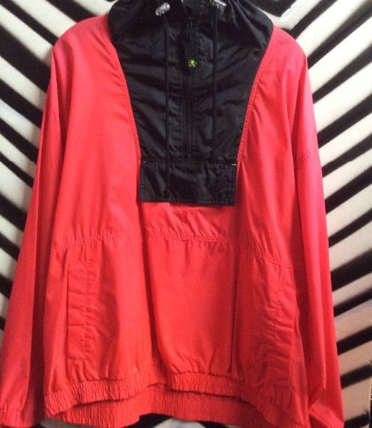 OP pullover windbreaker, with drawstring collar, neon-orange/black, size M
