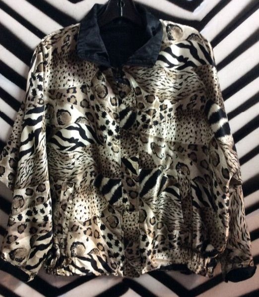Windbreaker, silky, cheetah print design, black/white/tan, size M