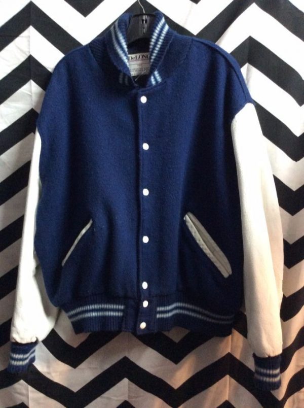 VARSITY JACKET – BUTTON-UP – WOOL – LEATHER SLEEVES – 2 TONED