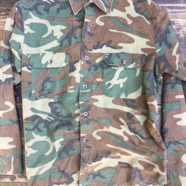 Fieldmaster shirt, flannel, long sleeve, button-up, camo design, green/brown/creme, size M