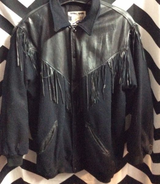 BOMBER JACKET – VARSITY STYLE – WOOL – LEATHER W/FRINGE