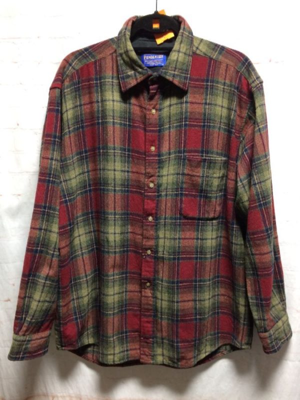 WOOL PENDLETON PLAID DESIGN FLANNEL SHIRT