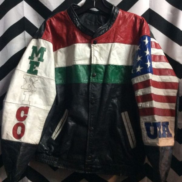 WORLD CUP LEATHER JACKET W/ USA & MEXICO ARM PATCHES