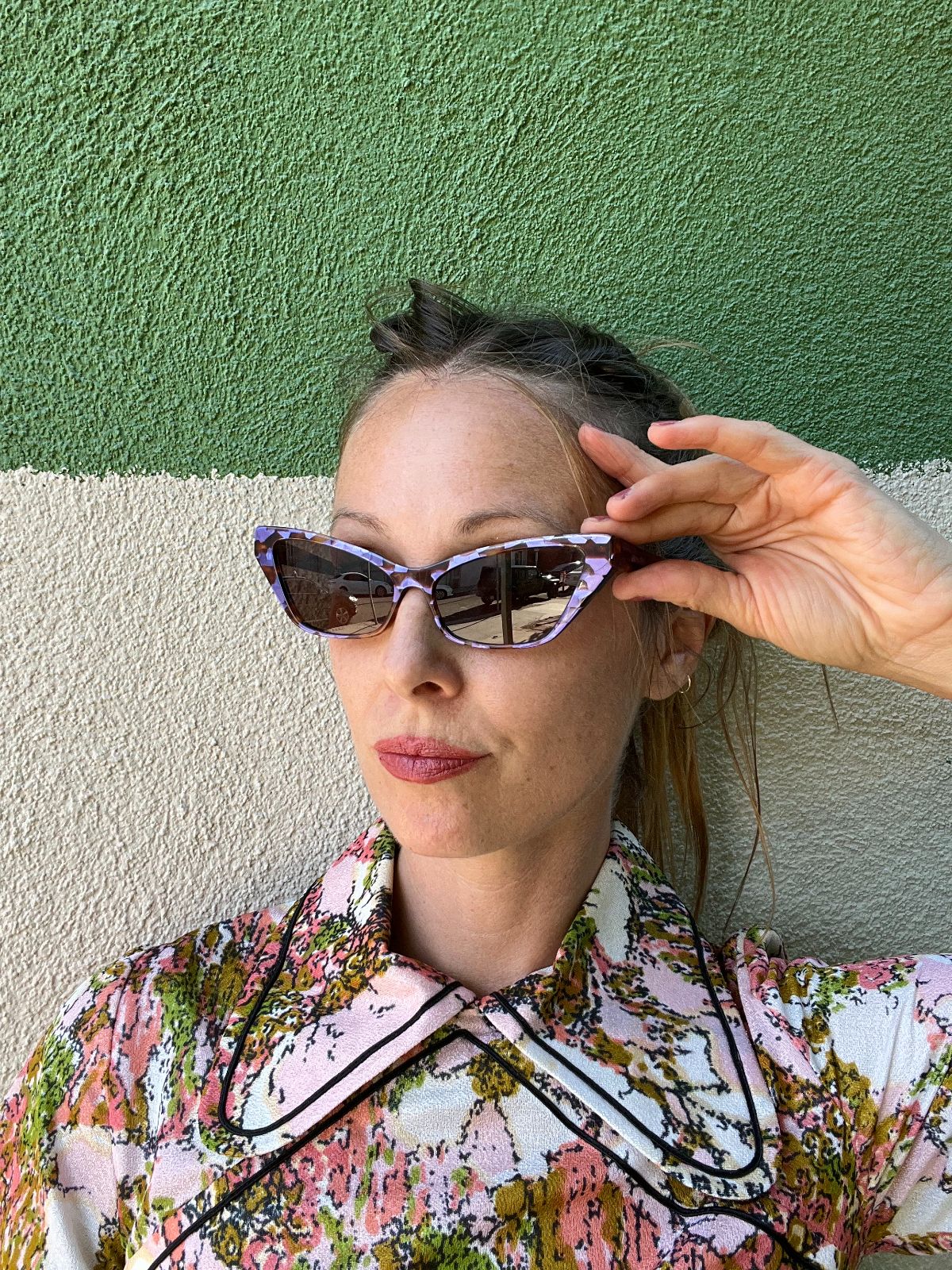 WOW! MADE IN ITALY! CAT-EYE VIOLET SPOTTED TERRAZZO TORTOISE SUNGLASSES