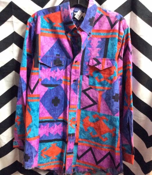 WRANGLER WESTERN SHIRT – COWBOY CUT W/ABSTRACT PRINT DESIGN