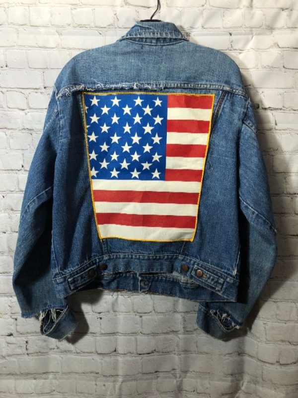 WRANGLER DENIM JACKET AMERICAN FLAG PATCH ACID WASH