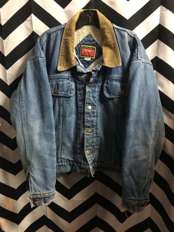 WRANGLER DENIM JACKET W/ CORDUROY COLLAR & SHERPA LINING