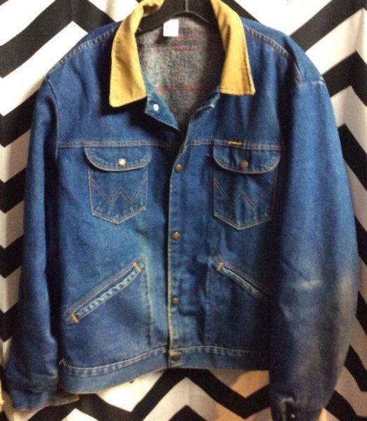 WRANGLER DENIM JACKET – SNAP BUTTONS W/CORDUROY COLLAR & BLANKET LINING