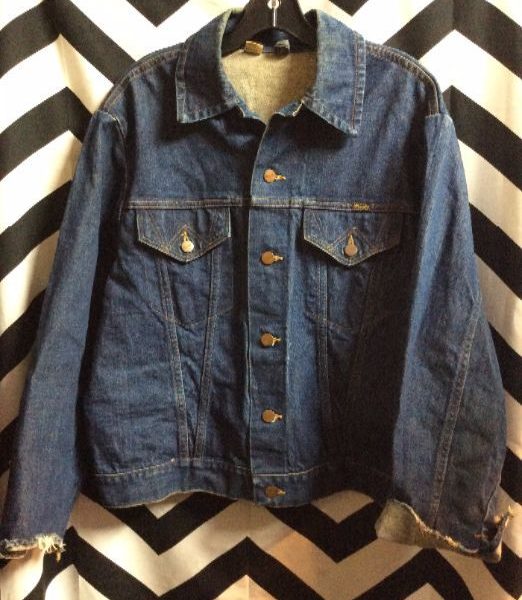 *AS-IS* SHERPA LINED DENIM JACKET CORDUROY COLLAR PAISLEY BRASS SNAP BUTTONS- RIBBED INTERIOR CUFF