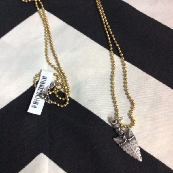 NECKLACE – PENDANT – METAL ARROWHEAD – WIRE WRAPPED & FLINT KNAPPED LOOK – BRASS BALL CHAIN