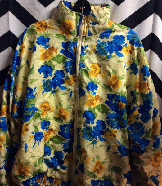 Windbreaker jacket, zip-up, floral pattern, yellow/blue/green, size L