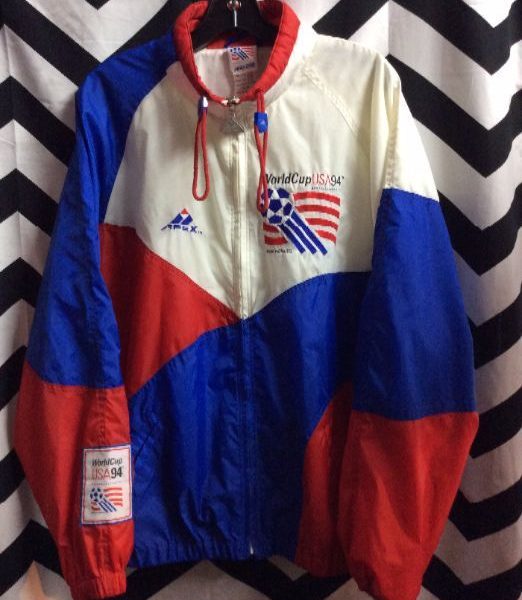 Windbreaker jacket, World Cup USA, zip-up, color block design, red/white/blue, size M