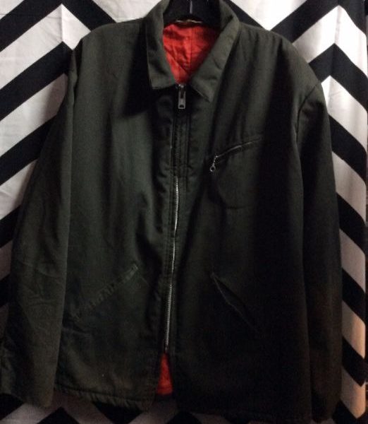 Jacket, canvas, zip-up, satin quilted lining, olive-green/red, size L